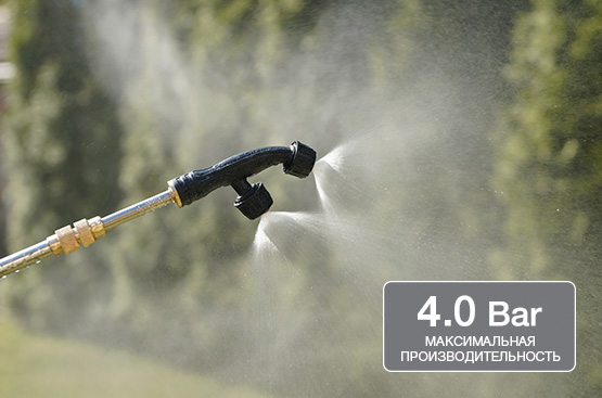 Опрыскиватель оснащен мощным насосом, который обеспечивает производительность более 2 л/мин, что позволяет распылять до 380 л жидкости на одном заряде аккумулятора. Функция Auto Stop, которая отключает насос при отсутствии распыления и экономит заряд батареи, увеличит время работы опрыскивателя до 20%.
