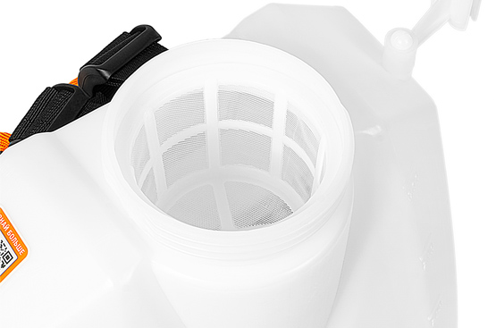Широкая горловина опрыскивателя делает наполнение бака очень удобным, а установленный на ней фильтр грубой очистки предотвращает попадание крупных частиц в бак и защищает насос от повреждения.