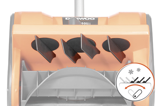 Направляющие выброса снега упрощают и повышают качество уборки позволяя отбрасывать снег в сторону от убираемого участка.
