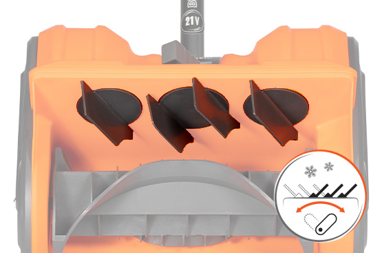 Направляющие выброса снега упрощают и повышают качество уборки позволяя отбрасывать снег в сторону от убираемого участка.