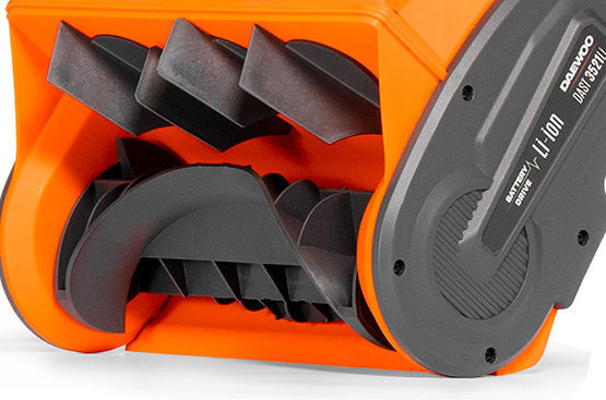 Снегоуборщик совместим со всеми аккумуляторными инструментами и батареями DAEWOO линейки 21В.
